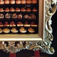 Het schilderij vol lekkernij wordt gevuld met gebakjes met eetbare inkt. Elke gewenste foto kan hierop gedrukt worden. Ook is het mogelijk om een portretfoto te laten fotoshoppen door uw afbeelding samen te voegen met het uiterlijk van uw icoon. Het schilderij wordt gepresenteerd op een schildersezel.