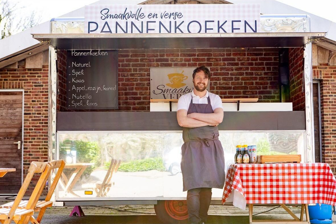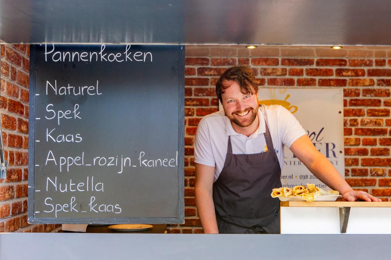 Lekker onbeperkt belegde pannenkoeken eten vers gebakken in de foodtruck